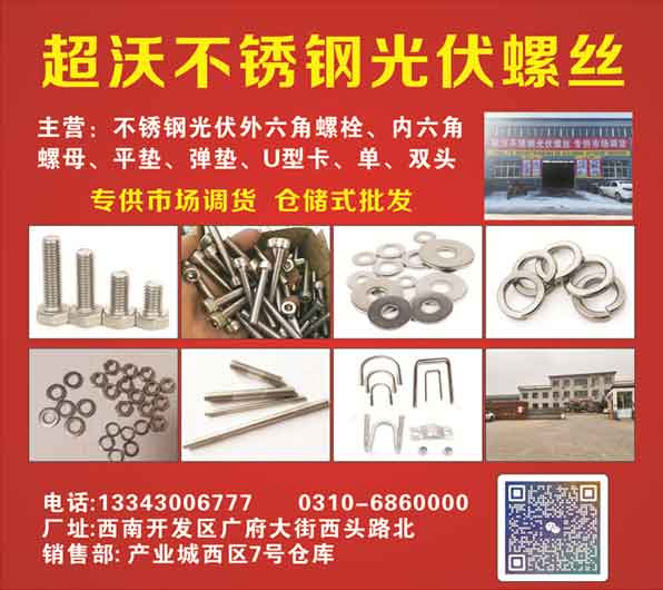 主营:不锈钢光伏外六角螺栓、内六角螺母、平垫、弹垫、U型卡、单、双头