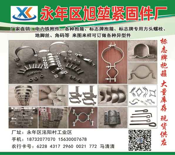厂家直销:电力铁附件、各种抱箍、标志牌抱箍、标志牌专用方头螺栓地脚丝、角码等 来图来样可订做各种异型件