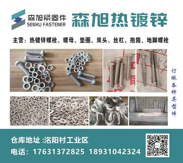 主营:热镀锌螺栓、螺母、垫圈、双头、丝杠、抱箍、地脚螺栓