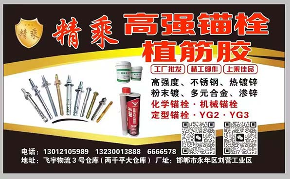 精乘高强锚栓植筋胶专业制造:高强度锚栓4.8级5.8级8.8级10.9级化学锚栓,定型锚栓,机械锚栓,异型锚栓,国标化学锚栓,热度锌化学锚栓、不锈钢化学锚栓 定型锚栓 加长超短化学锚栓 高强度机械锚栓