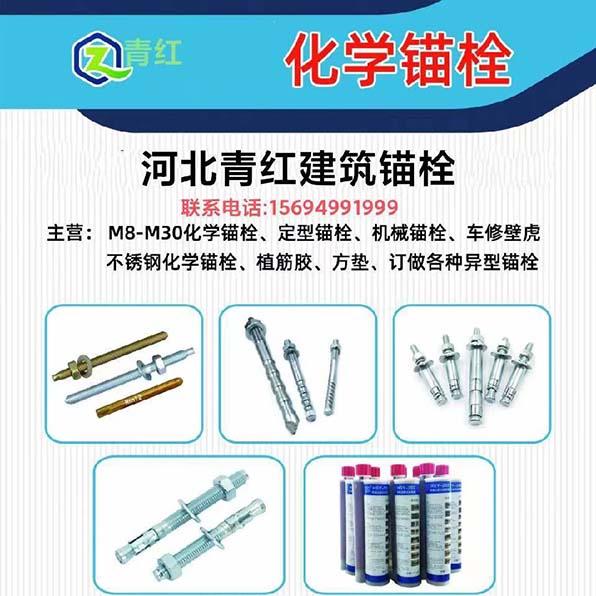 主营:M8-M30化学锚栓、定型锚栓、机械锚栓、车修壁虎不锈钢化学锚栓、植筋胶、方垫、订做各种异型锚栓