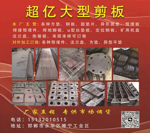 超亿大型剪板本 厂 主 营:各种方垫、钢板、圆垫片、异形圆垫、预埋 板焊接预埋件、焊地脚板、u型丝垫板、定位钢板、矿用托盘法兰盘、抱箍板、来图来样可订做