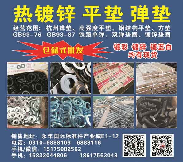 经营范围:杭州弹垫、高强度平垫、钢结构平垫、方垫铁路单弹、双弹垫圈、镀锌垫圈GB93-76GB93-87 仓储式批发