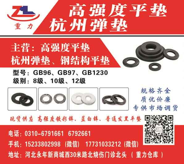 主营:高强度平垫杭州弹垫、钢结构平垫 型号:GB96、GB97、GB1230级别:8级、10级、12级