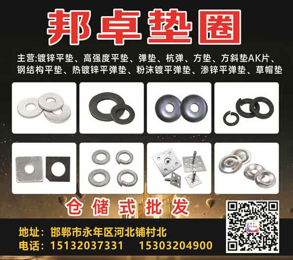 主营:镀锌平垫、高强度平垫、弹垫、杭弹、方垫、方斜垫AK片钢结构平垫、热镀锌平弹垫、粉沫镀平弹垫、渗锌平弹垫、草帽垫