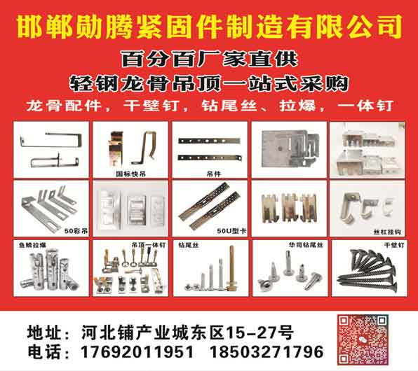 轻钢龙骨吊顶一站式采购 龙骨配件,干壁钉,钻尾丝、拉爆,一体钉