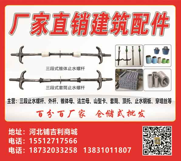 主营:三段止水螺杆、外杆、锥体母、法兰母、山型卡、套筒、顶托、止水钢板、穿墙丝等百分百厂家 仓储式批发