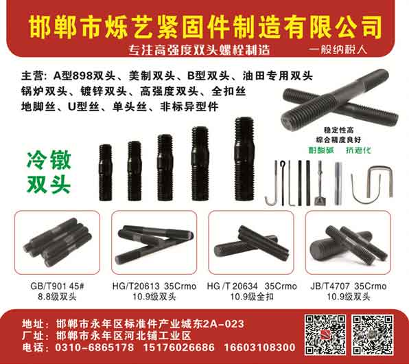 主营:A型898双头、美制双头、B型双头、油田专用双头锅炉双头、镀锌双头、高强度双头、全扣丝地脚丝、U型丝、单头丝、非标异型件