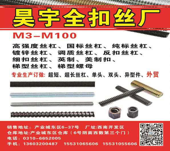 高强度丝杠、国标丝杠、纯标丝杠、镀锌丝杠、调质丝杠、反扣丝杠、细扣丝杠、英制、美制扣、梯型丝杠、梯型螺母