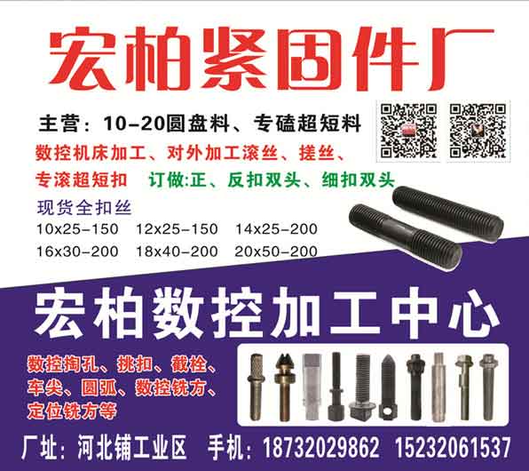 宏柏紧固件厂主营:10-20圆盘料、专磕超短料数控机床加工、对外加工滚丝、搓丝、