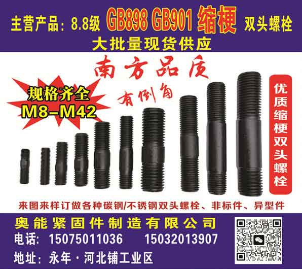 奥能紧固件制造有限公司主营产品:GB898 GB901 缩梗8.8级大批量现货