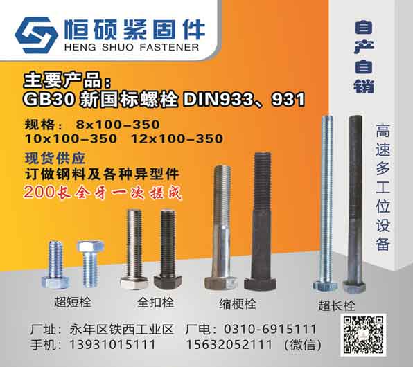 主要产品:GB30 新国标螺栓 DIN933、931