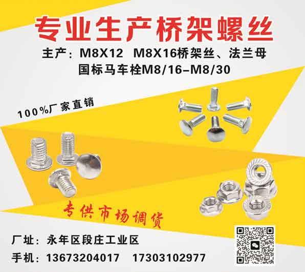 主产:M8X12M8X16桥架丝、法兰母国标马车栓M8/16-M8/30