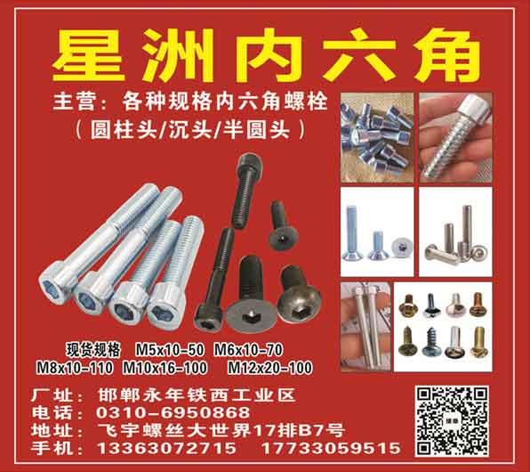 主营:各种规格内六角螺栓(圆柱头/沉头/半圆头)