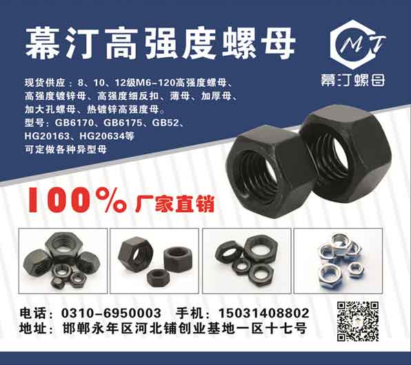 幕汀高强度螺母现货供应:8、10、12级M6-120高强度螺母、高强度镀锌母、高强度细反扣、薄母、加厚母、加大孔螺母、热镀锌高强度母
