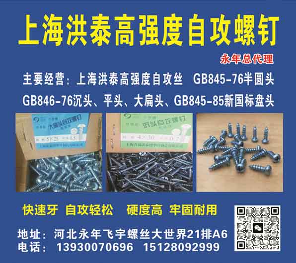 主要经营:上海洪泰高强度自攻丝 GB845-76半圆头GB846-76沉头、平头、大扁头、GB845-85新国标盘头